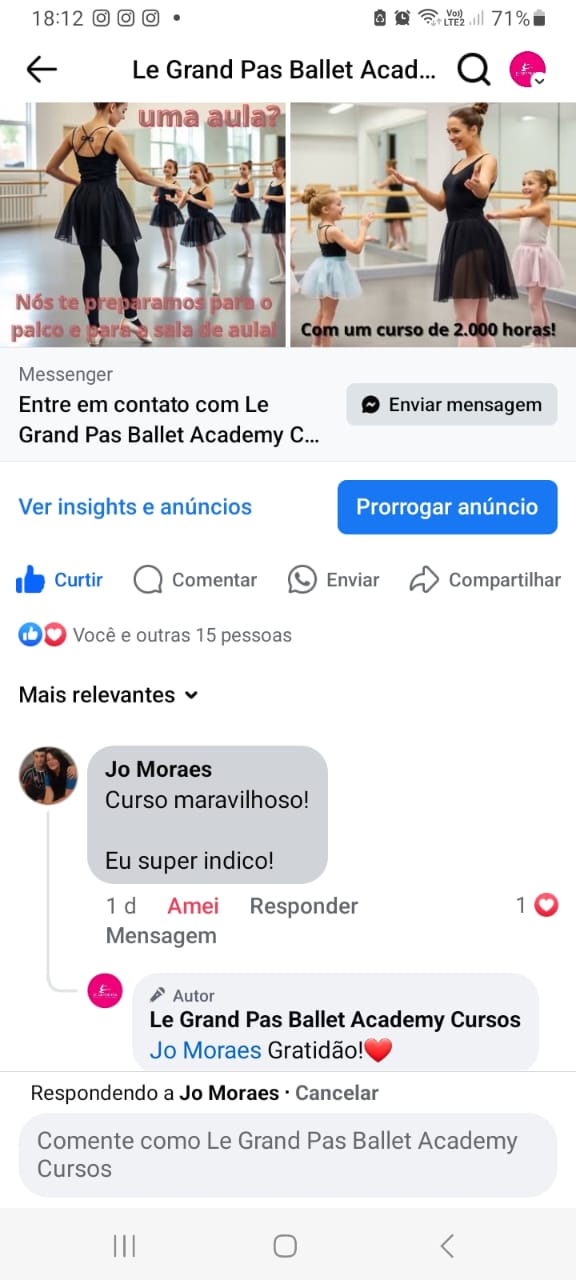 Fundadora da LE GRAND PAS Ballet Academy (Mais de 20 anos de experiência).